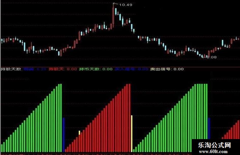 卖出信号:IF(REF(持股天数,1)>0 AND 持股天数=0,3,0),STICK,COLORYELLOW;