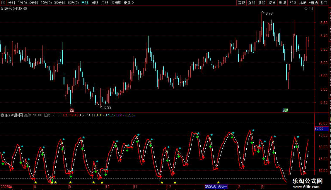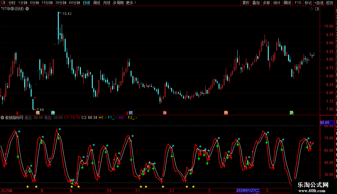 DRAWTEXT(CROSS(C2,C1),REF(C1,1),'★'),COLORC6C600;