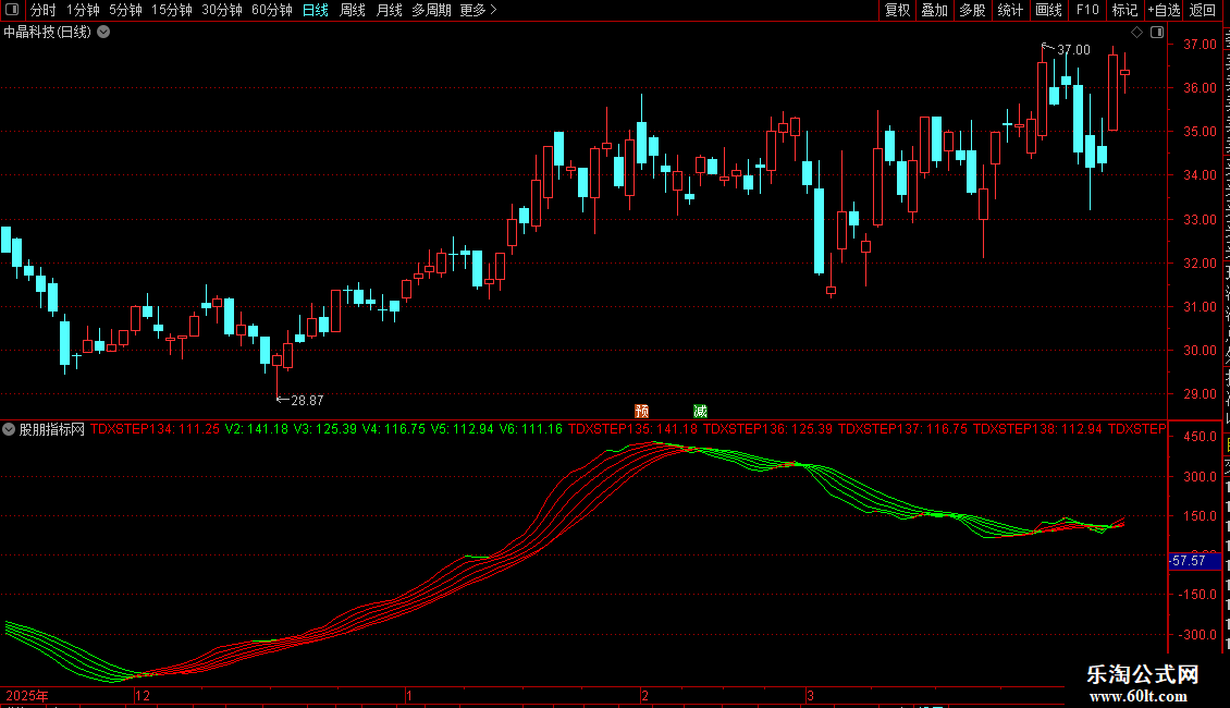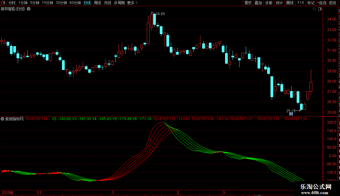 TDXSTEP136:IF(V3>=REF(V3,1),V3,DRAWNULL),COLORRED;