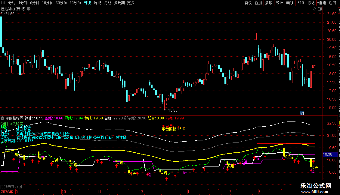 DRAWTEXT_FIX(1,0.5,0.04,0,STRCAT(STRCAT('平台周期 ',CON2STR(PTZQ,0)),' 天')),COLORRED;