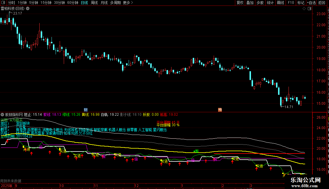 影子线:MA(CLOSE,25)+MA(CLOSE,25)*13/100,COLORGRAY;