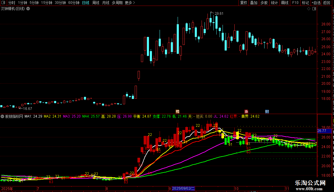 压:IF(CURRBARSCOUNT<=VAR2,VAR4-VAR6*0.191,DRAWNULL),NODRAW,COLORMAGENTA;
