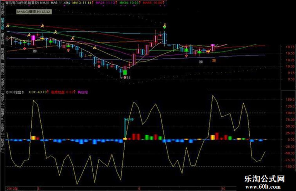 CCI:(TYP-MA(TYP,5))/(0.015*AVEDEV(TYP,5))LINETHICK1,COLORYELLOW;