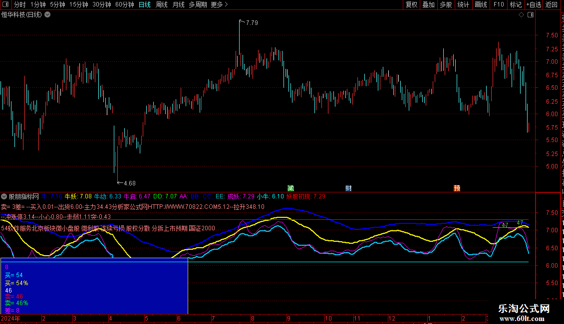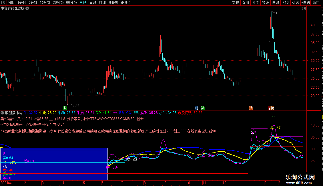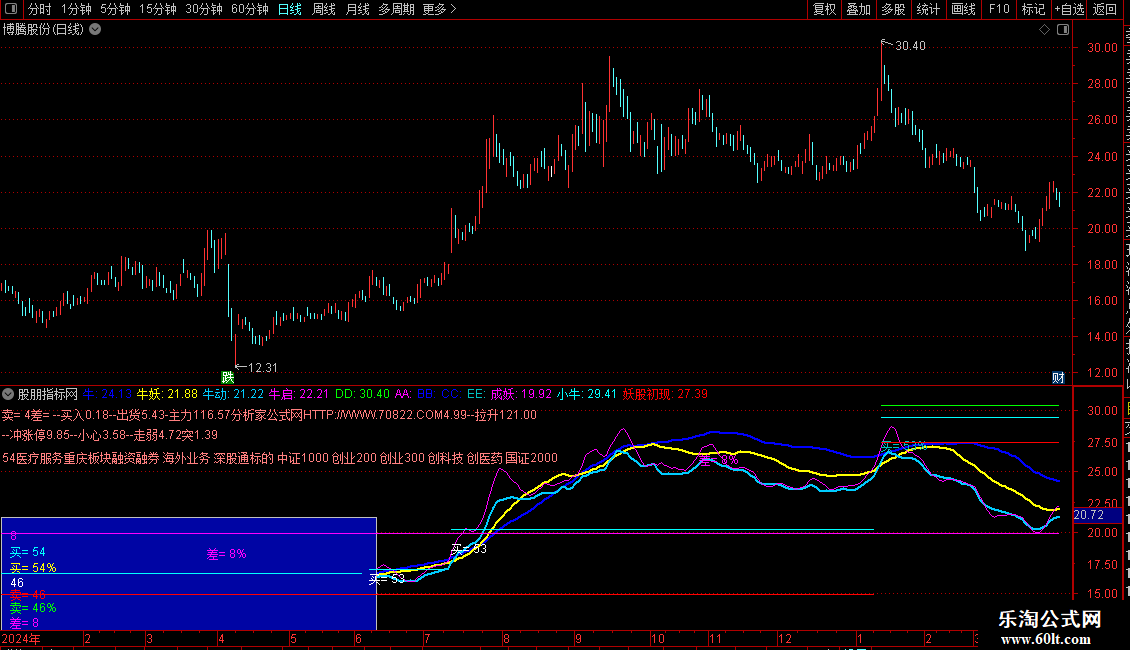 牛动:(MA(CLOSE,3)+MA(CLOSE,6)+MA(CLOSE,12)+MA(CLOSE,24))/4,COLORFFCC00,LINETHICK2;