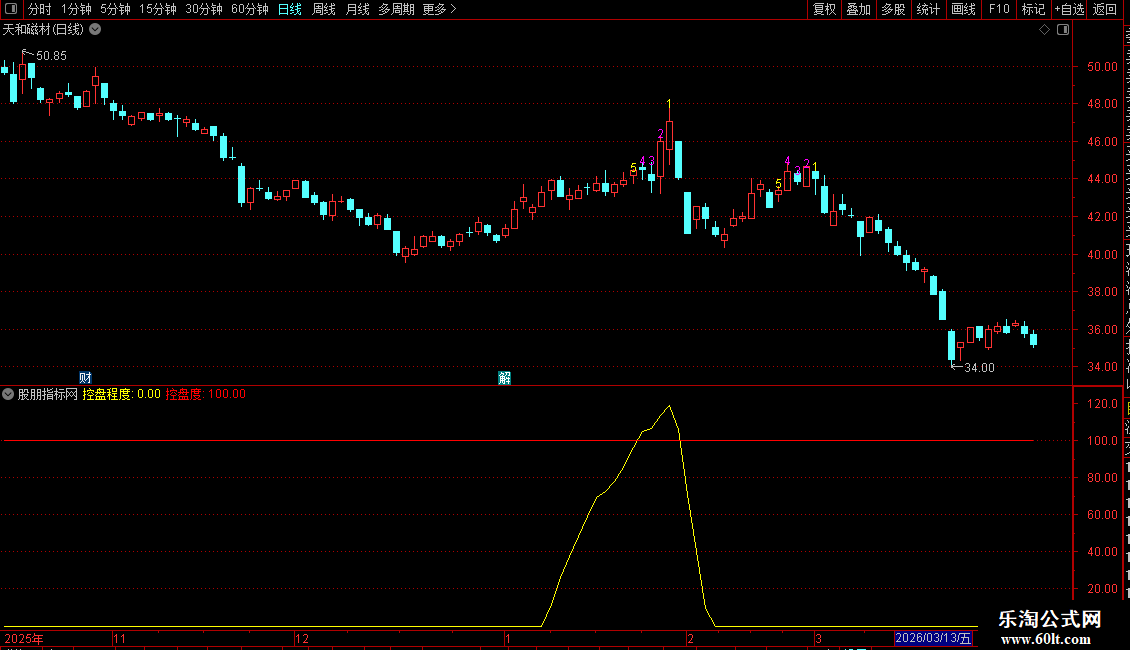 控盘程度:(IF(B6>N1,B6-N1,0))*2.5,COLORYELLOW;