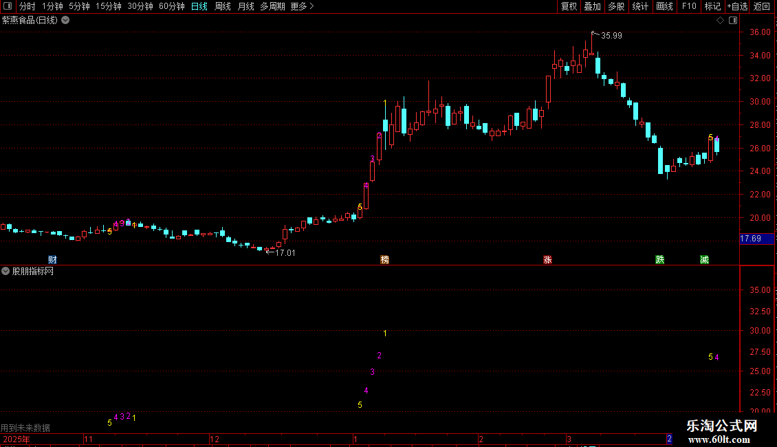 DRAWNUMBER(N>=4 AND REFXV(COUNT(S,4),3)=4 AND COUNT(S,6)=6 AND REF(S,6)=0,H*1.01,4),COLORMAGENTA;