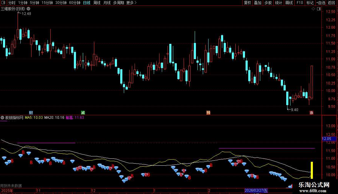STICKLINE(HIGH/REF(CLOSE,1)>1.098 AND CLOSE/REF(CLOSE,1)<1.098,OPEN,CLOSE,2,0),COLORMAGENTA;