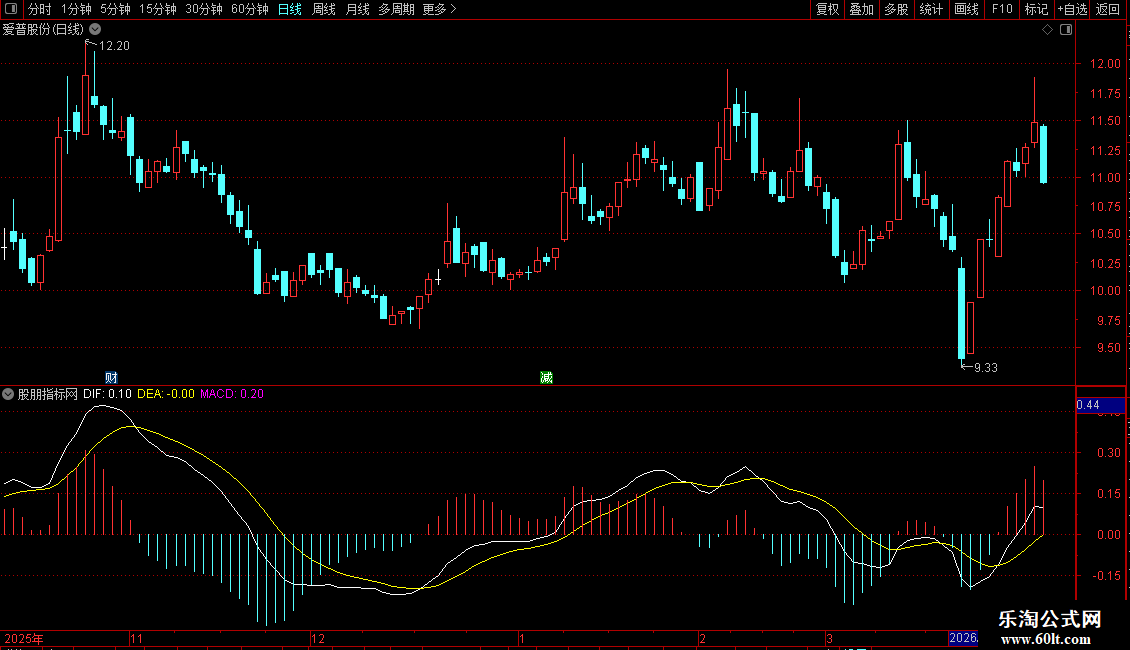 输出DIF:收盘价的12日指数移动平均-收盘价的26日指数移动平均