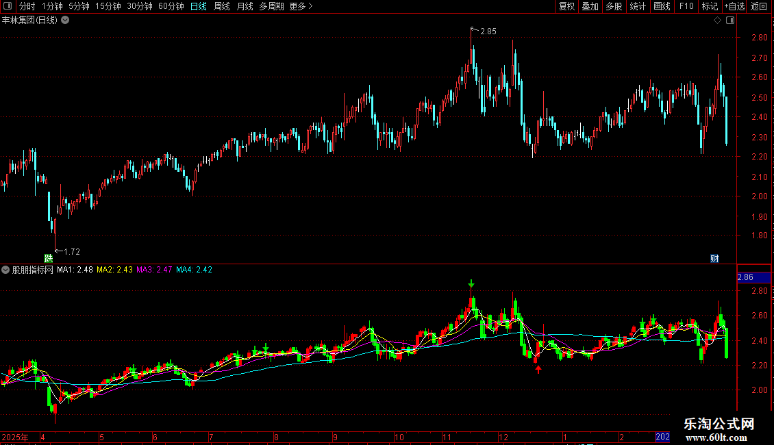 这个指标是我用了20年的买卖指标,成功率大家可以验证,会卖的才是师傅,一个股票买卖点很重要。本指标保你卖到次高位,按提示卖出一定不会深套。上面有具体用法,不在叙述。至于“对对数”对对数就是指两个一样的数字例如88 99 77 66 55 44 11 22 33。拖拉机单就是指777 888 999 666 55 5 444等这样的单子,在高位最高价时出现一定要卖出。一般都是大顶。甚至是历史高点。切记,切记。