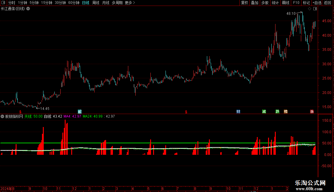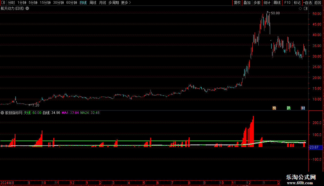 天线:50,COLORGREEN,LINETHICK2;DIFF:=EMA(CLOSE,12)-EMA(CLOSE,26);