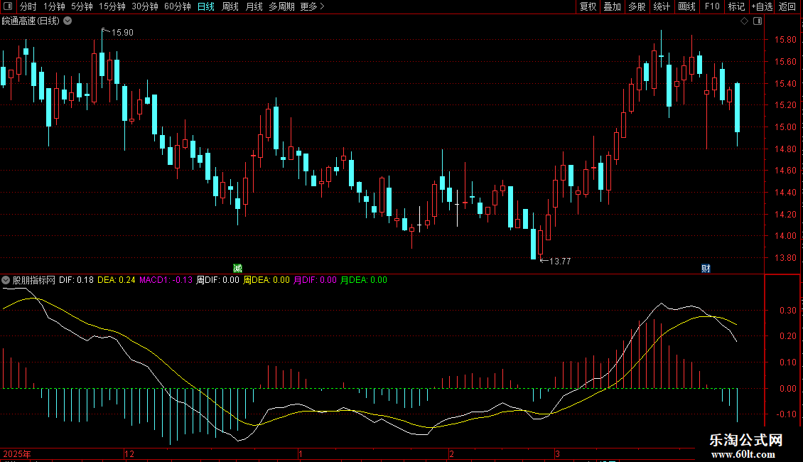 周DIF:"MACD.DIF#WEEK"COLORWHITE,DOTLINE;