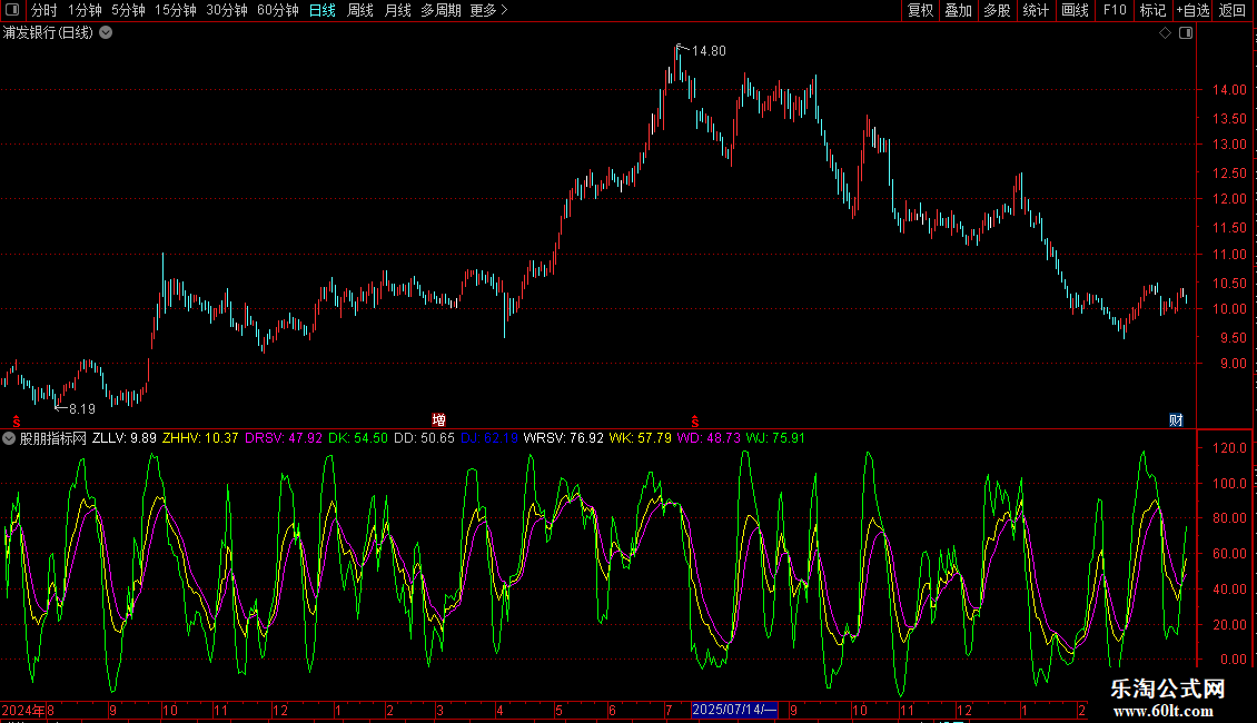 日周月KDJ三副(指标、副图、通达信、 贴图 )不加密、同日线同图看盘】编写,仅做集合方便看盘