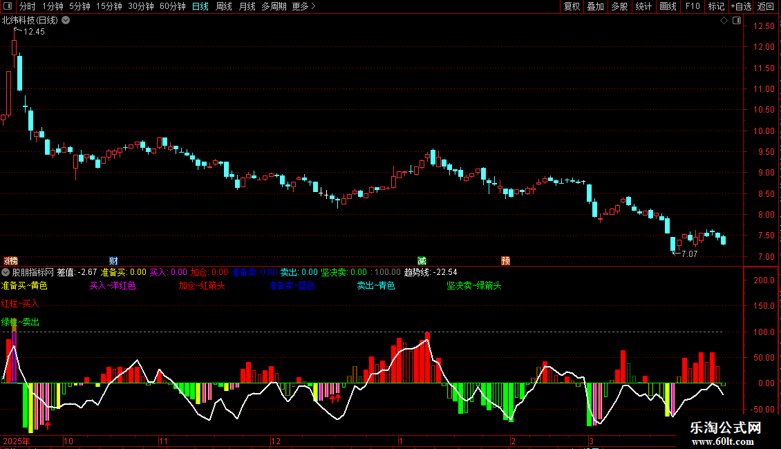 DRAWTEXT_FIX(ISLASTBAR,0.60,0,0,'坚决卖~绿箭头'),COLORGREEN;