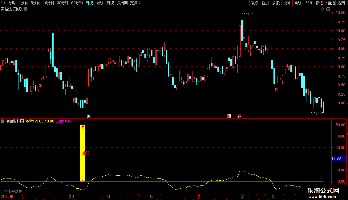 STICKLINE(多空>10,0,多空,1,0),COLORYELLOW;
