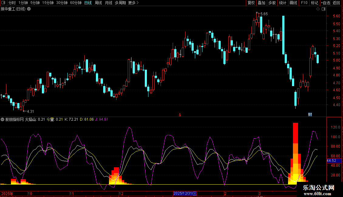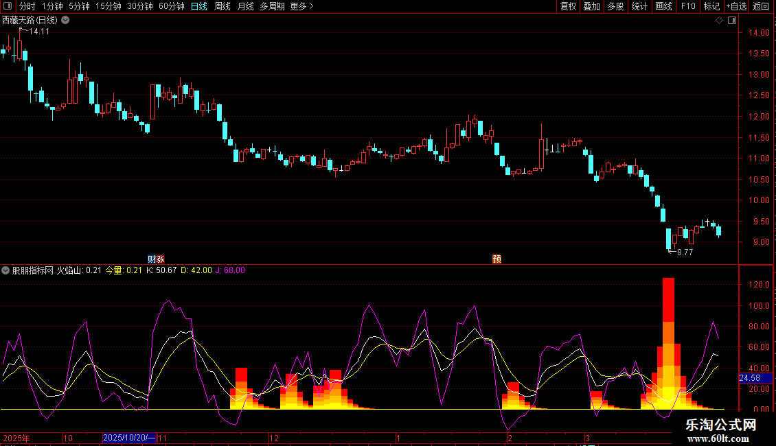STICKLINE(火焰山>0,0,今量*0.2,8,0) COLOR00FFFF;