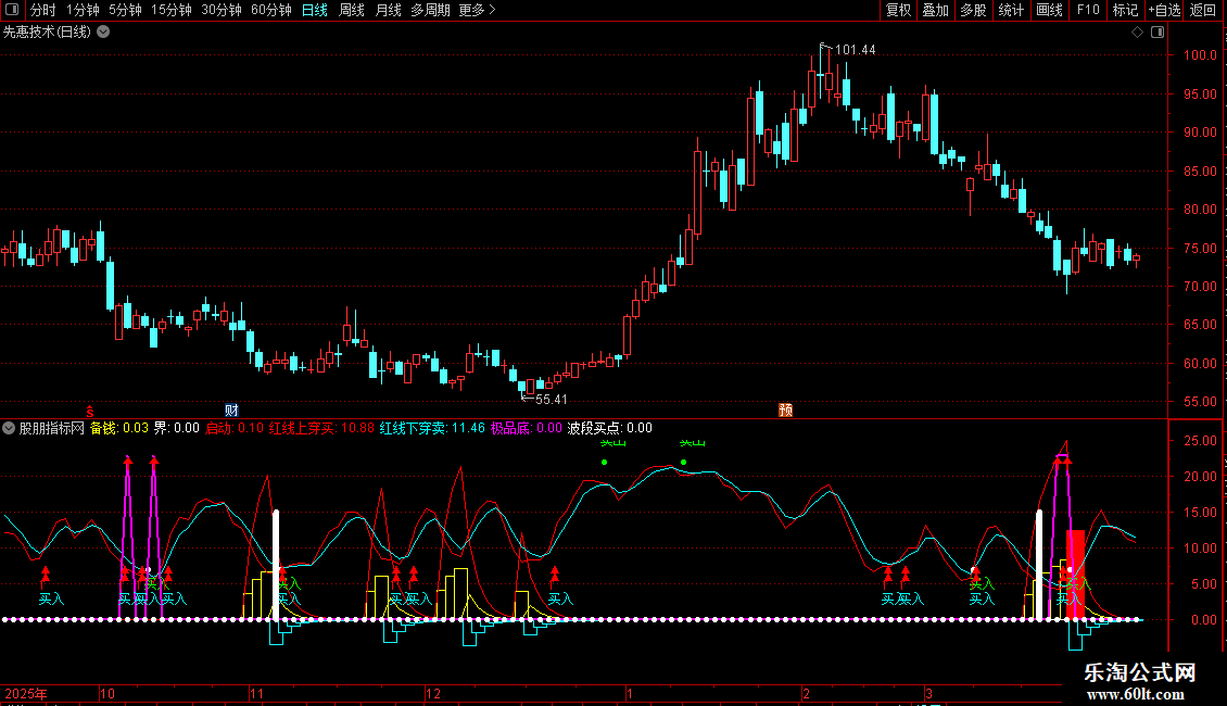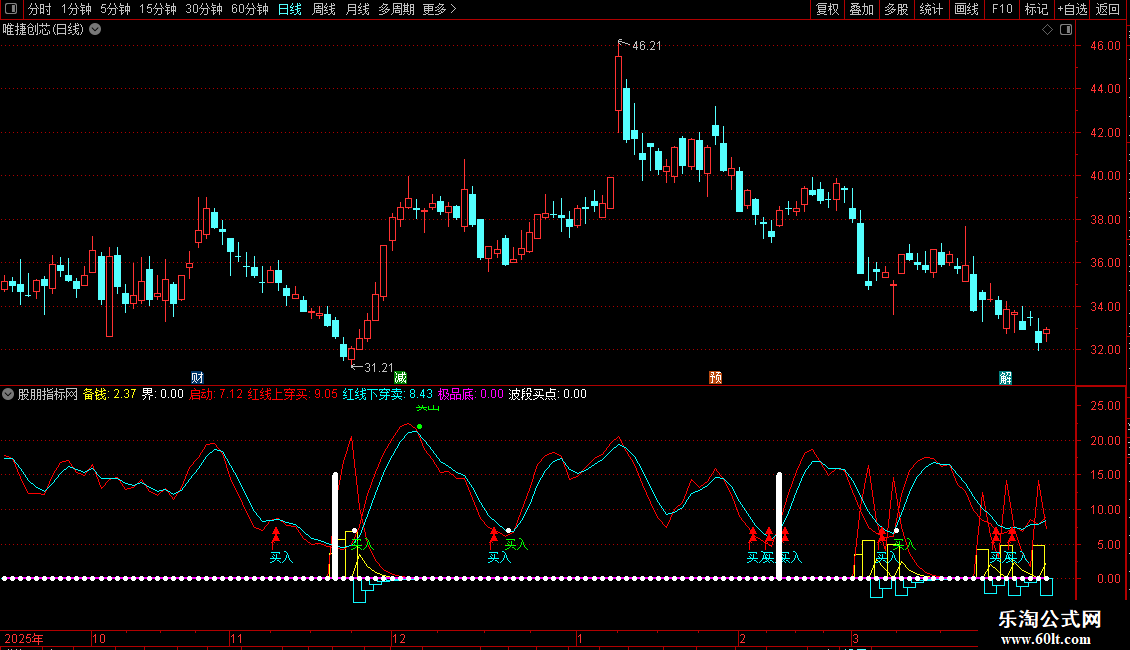 自用的精准买卖指标,主图➕副图。简单、直观、好用。当主图和副图同时出现提示信号时,产生共振,精确度会更高。