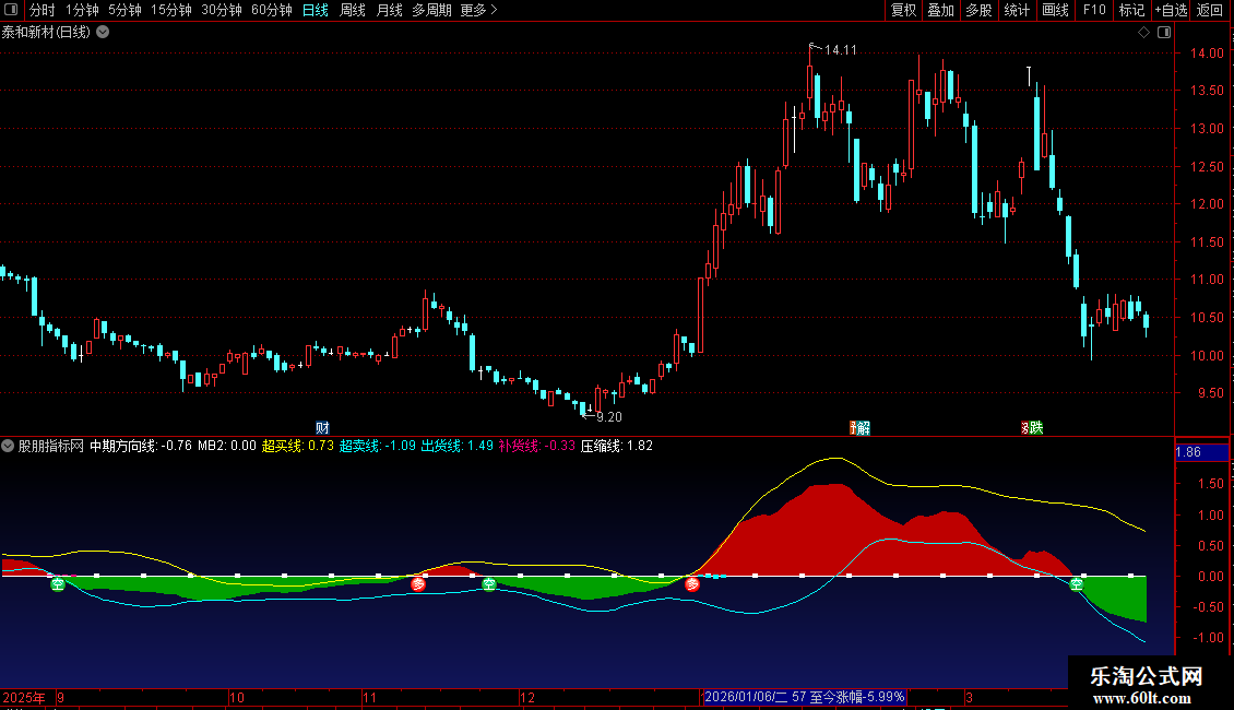 超卖线:MB-1.96*STD(中期方向线,20),COLORCYAN;