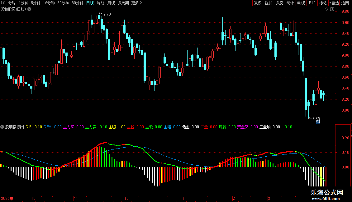 低金:CROSS(DIF,DEA) AND DIF<-0.1,COLORWHITE,NODRAW;