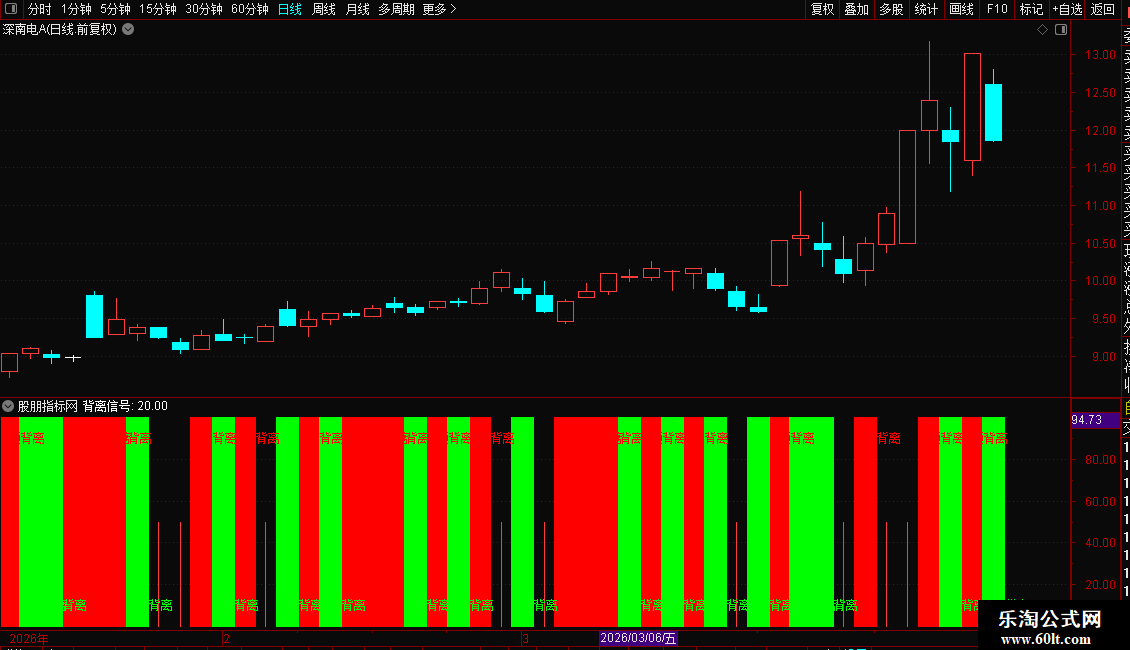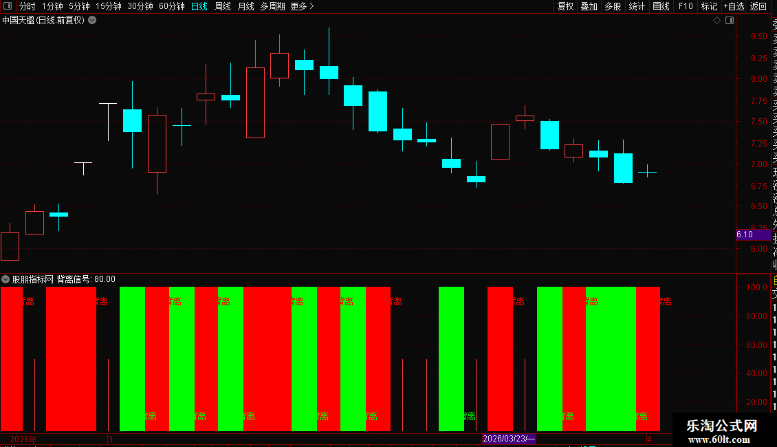 DRAWTEXT(背离信号=80,90,'顶背离'),COLORRED;