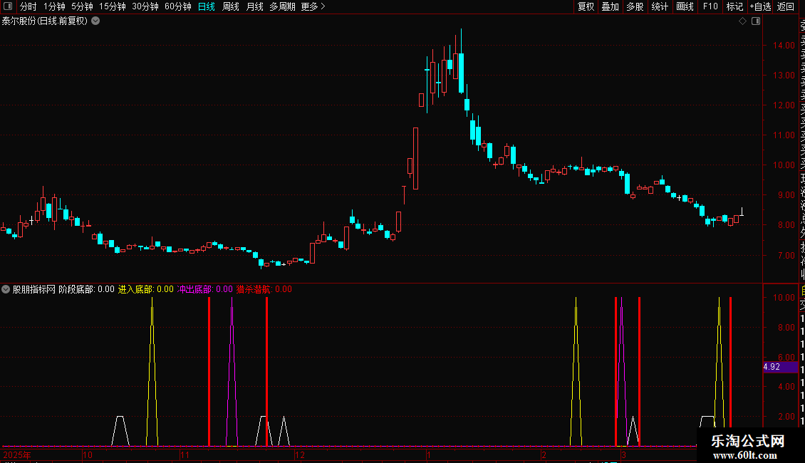 猎杀潜航:IF(CROSS(趋势,底部),10,0),STICK,COLORRED,LINETHICK3;