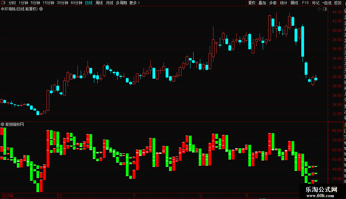 STICKLINE(RSI2<REF(RSI2,1),RSI2,REF(RSI2,1),3,0),COLORGREEN;