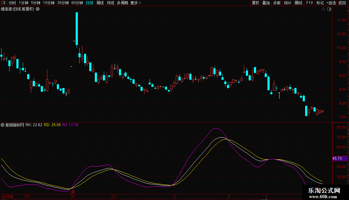 DRAWTEXT(CROSS(RK,RD)*SJ&&RD<20,RK*0.80,'多'),COLORRED;