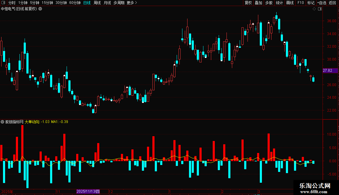 STICKLINE(大单动向<0,0,大单动向,0.5,0),COLORCYAN;