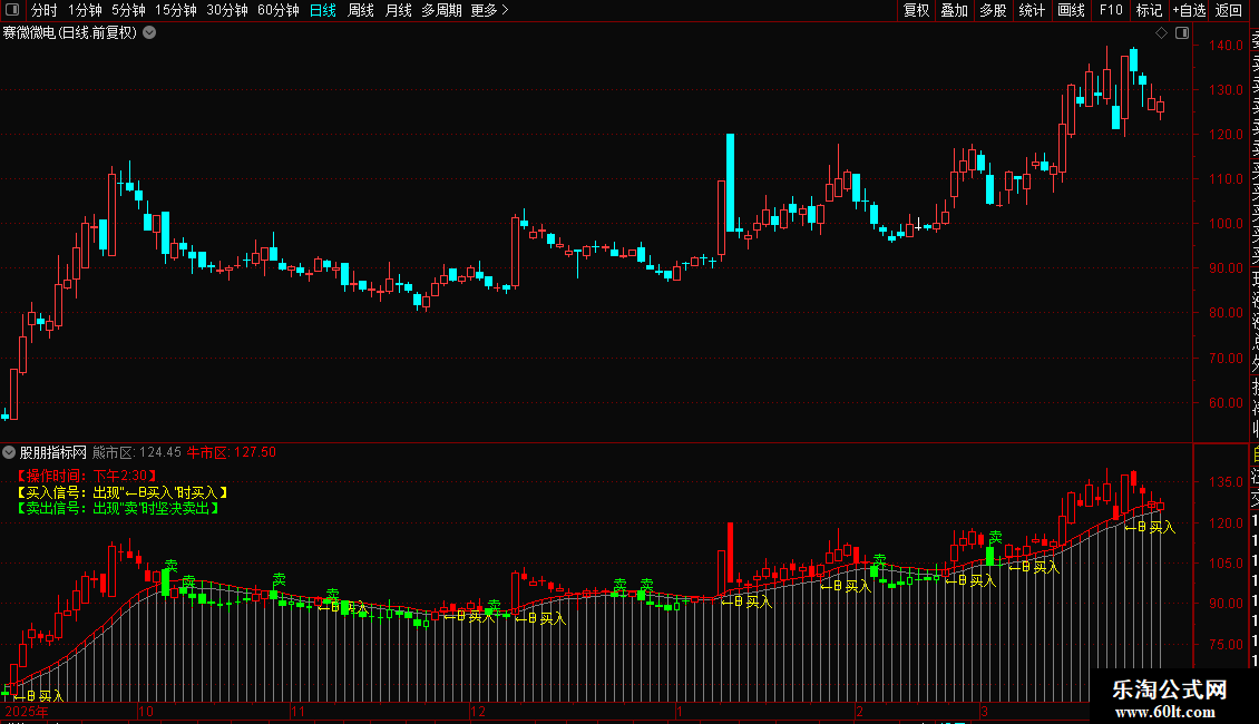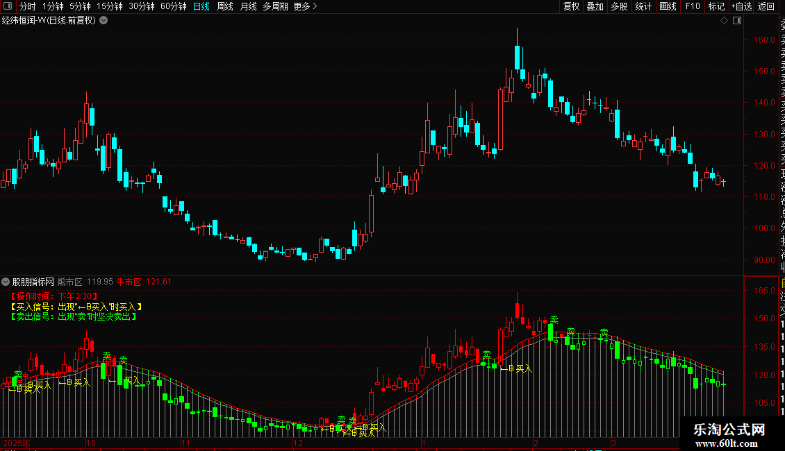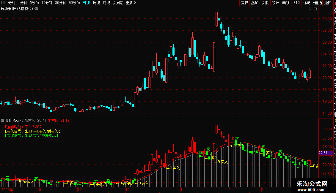 这个主图简单明了,一看就知道怎么用。K线上空牛熊轨道时提示“买入”,下穿时就提示“卖出“。轨道之上就是牛市区,轨道之下就是熊市区。牛市区拿稳手中票,熊市区放心玩。