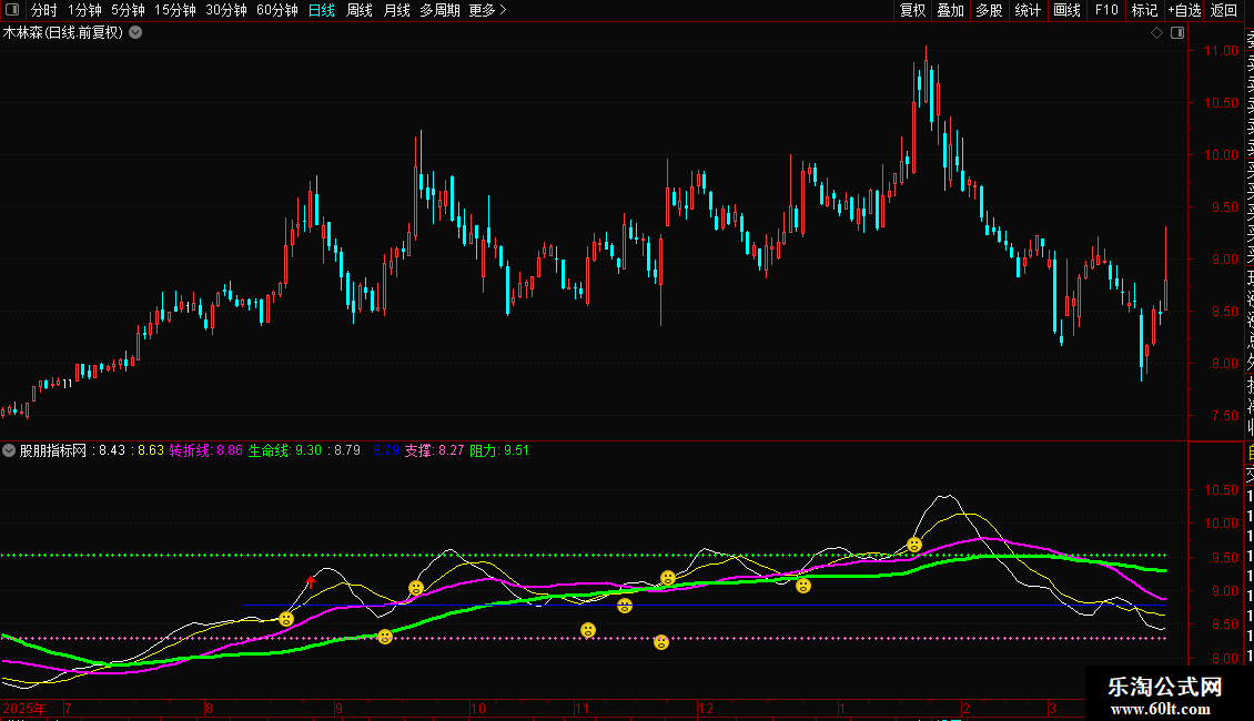 使用方法:所有的妖股都是主力长期积蓄筹码后进而拉升的结果,所以转折线穿越生命线是它的基本条件(个别也有即将穿越的),在这之前主力可能已经试盘拉了一小波,盘面上就会出现涨停板,出现小幅高度(前高),当正式启动后,必然突破前高。这里的大阳线穿越转折线或者突破前高就是启动的标志。这时,就该重点关注了。以后的走势,K线下有红箭头,一看就清楚了。