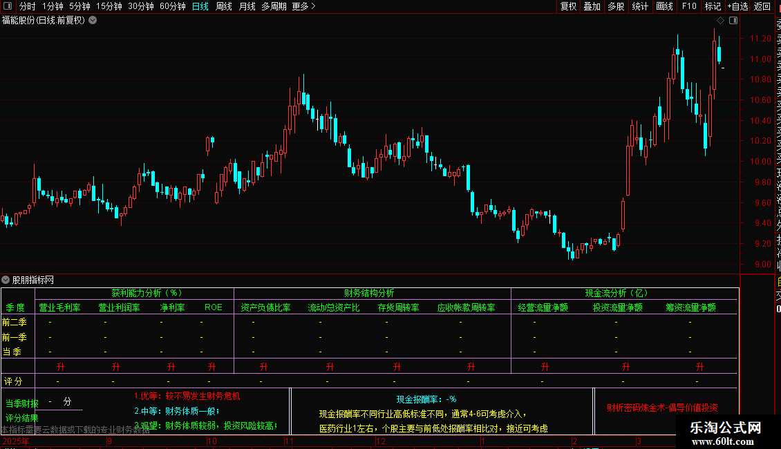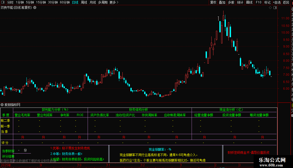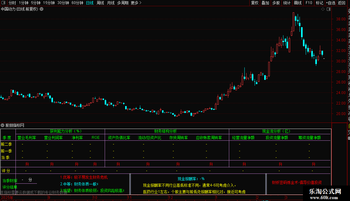 DRAWTEXT_FIX(ISLASTBAR,0.18,N1*8,0,'2.中等:财务体质一般;'),COLORCYAN;