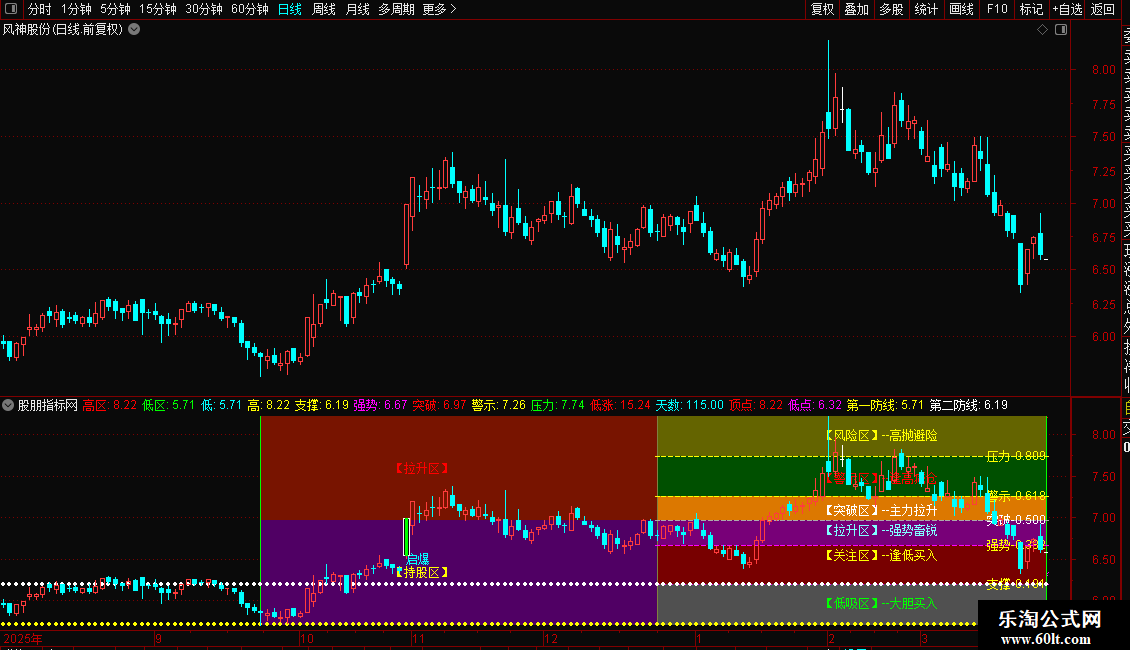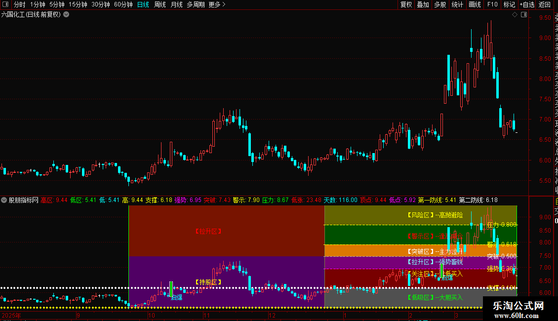 主图是黄金分割彩图,股价所处位置一目了然,恐高畏低的看一看