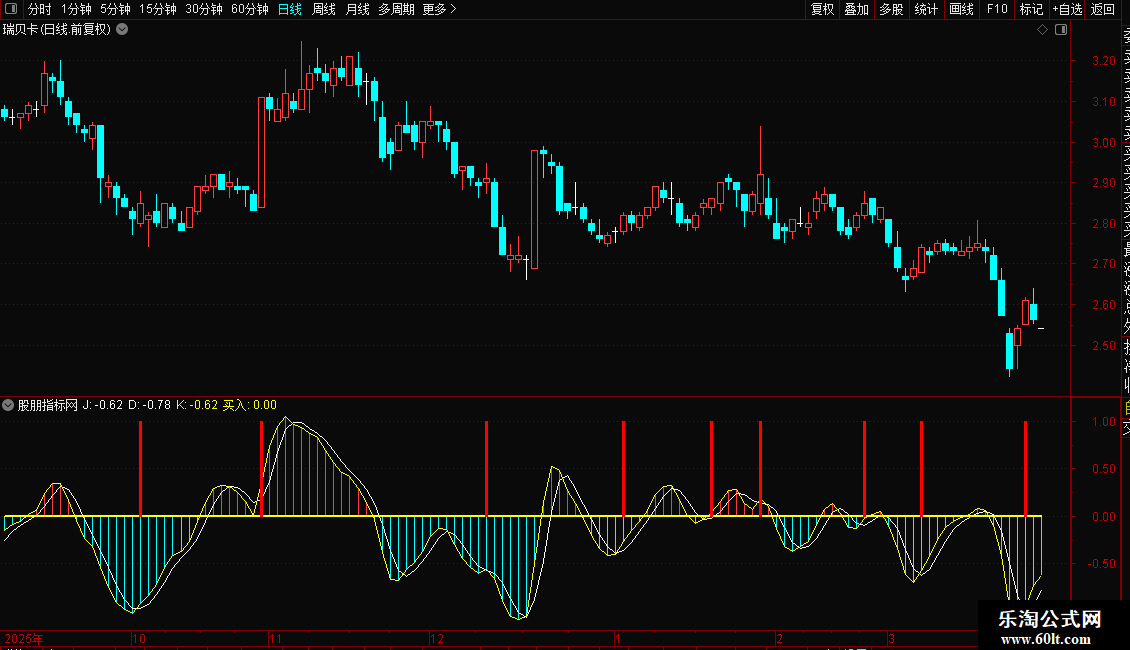 STICKLINE(C>(REF(C,1))AND(CROSS(K,D)),1.0,买入,1,0),COLORRED;