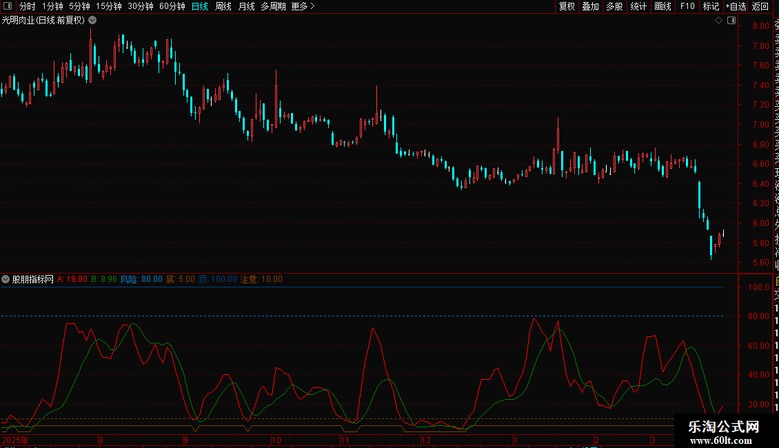 波段买卖点 风险顶底注意副图指标 源码 通达信 附图