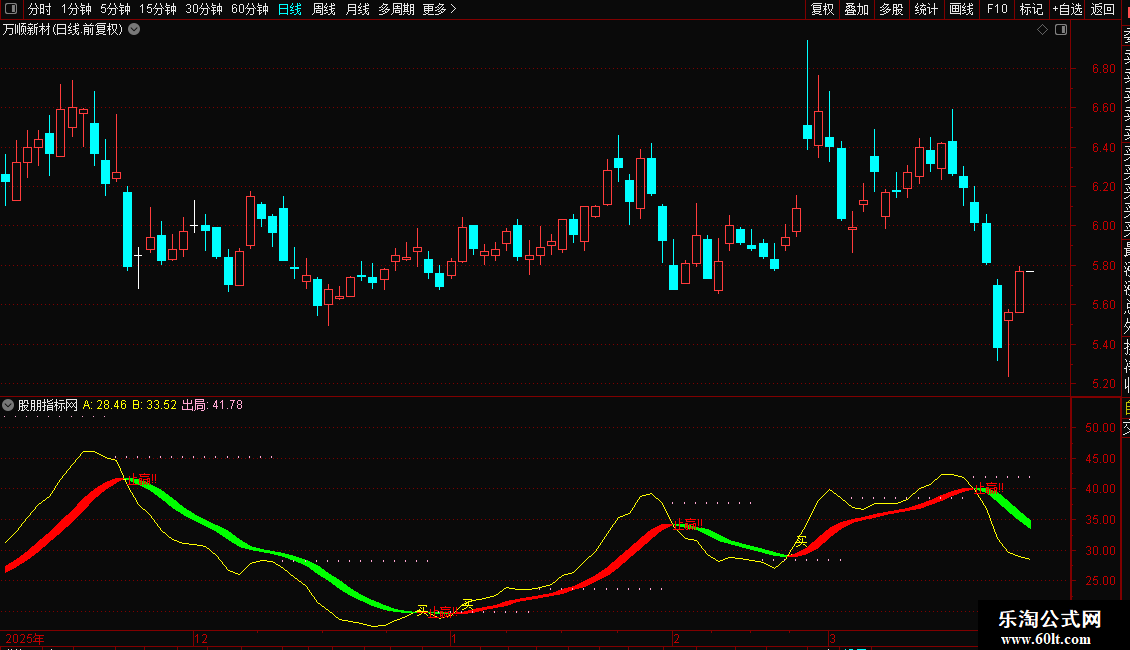 DRAWTEXT(CROSS(A,B) ,A,'买'),COLOR00FFFF;