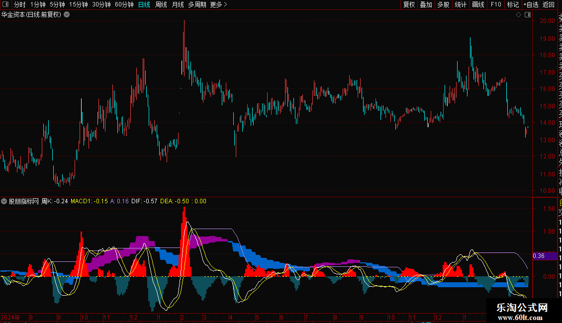 一个太普通的MACD指标引用了周线数据。色带是周MACD,其他显示是平常的日线MACD。操作选票时只看周MACD红色多头的,再看看是否有题材风口点火,以日线MACD刚变红,DiF线零上为进场点。坚持下去正收益没问题的。看长做短安全第一!指标好不好关键看你怎么用了。