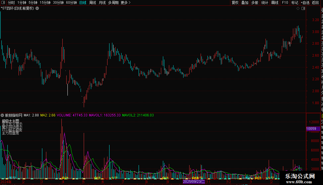 纯右侧交易当白线在绿线下方是观望信号,当绿线变为紫线,并且位于白线下方时介入持股。如何判断买入信号呢,会有一个金色阳柱上穿交叉线为买入信号,当跌破白线属于离场信号,看好的长线牛股可以反复做。