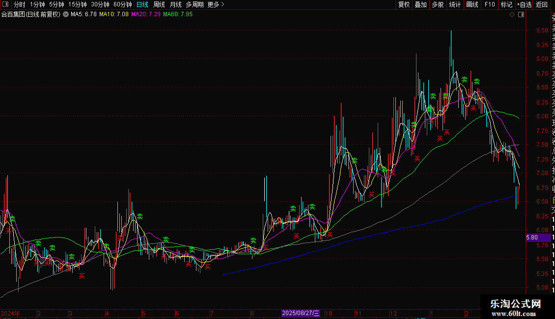 DRAWTEXT(CROSS(买线,卖线),LOW*0.98,'买'),COLORRED;