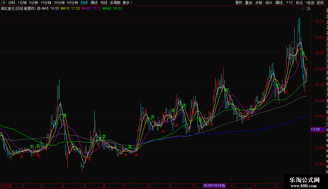 MA60:MA(CLOSE,60),LINETHICK1,COLORGREEN;