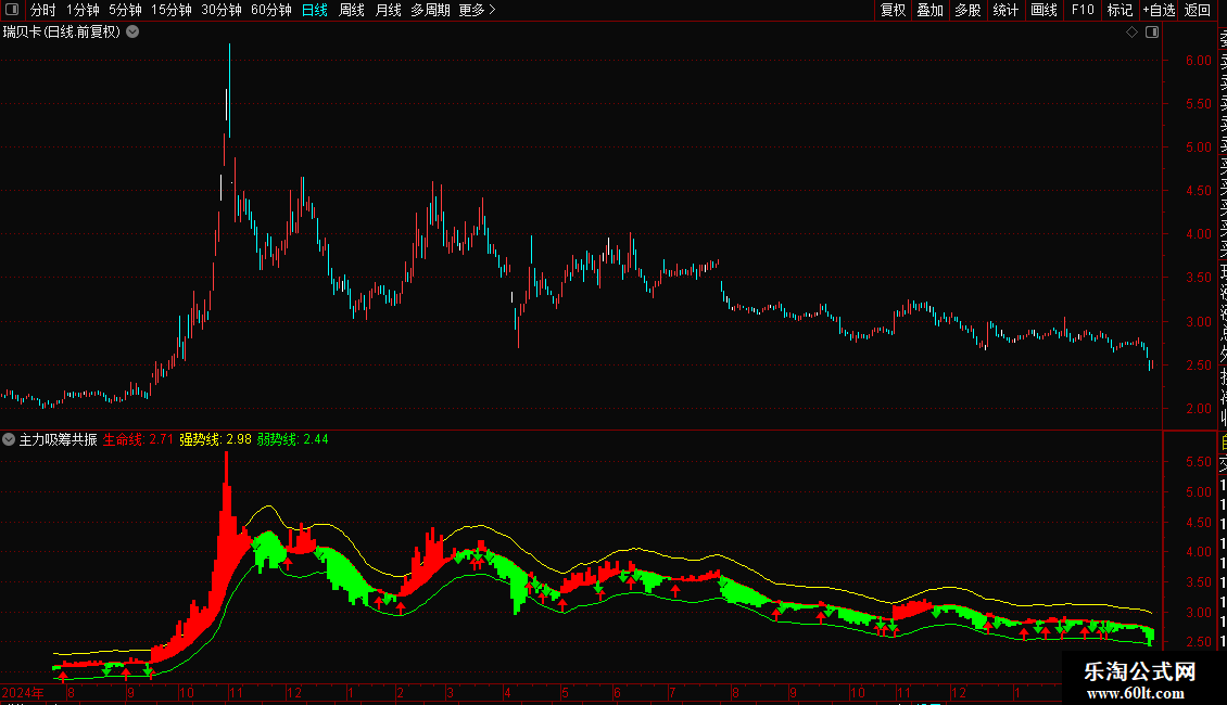 口诀:【紫色持有(中轴线变紫色2天后买入)、绿色卖出(中轴线变绿色2天后卖出)】,短线、中长线均实用。