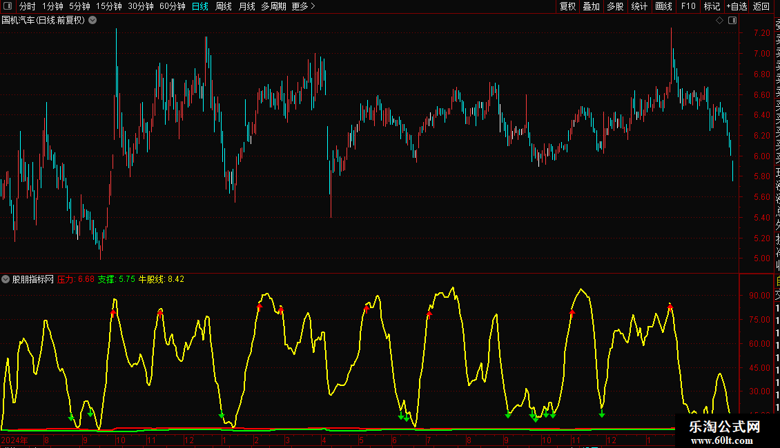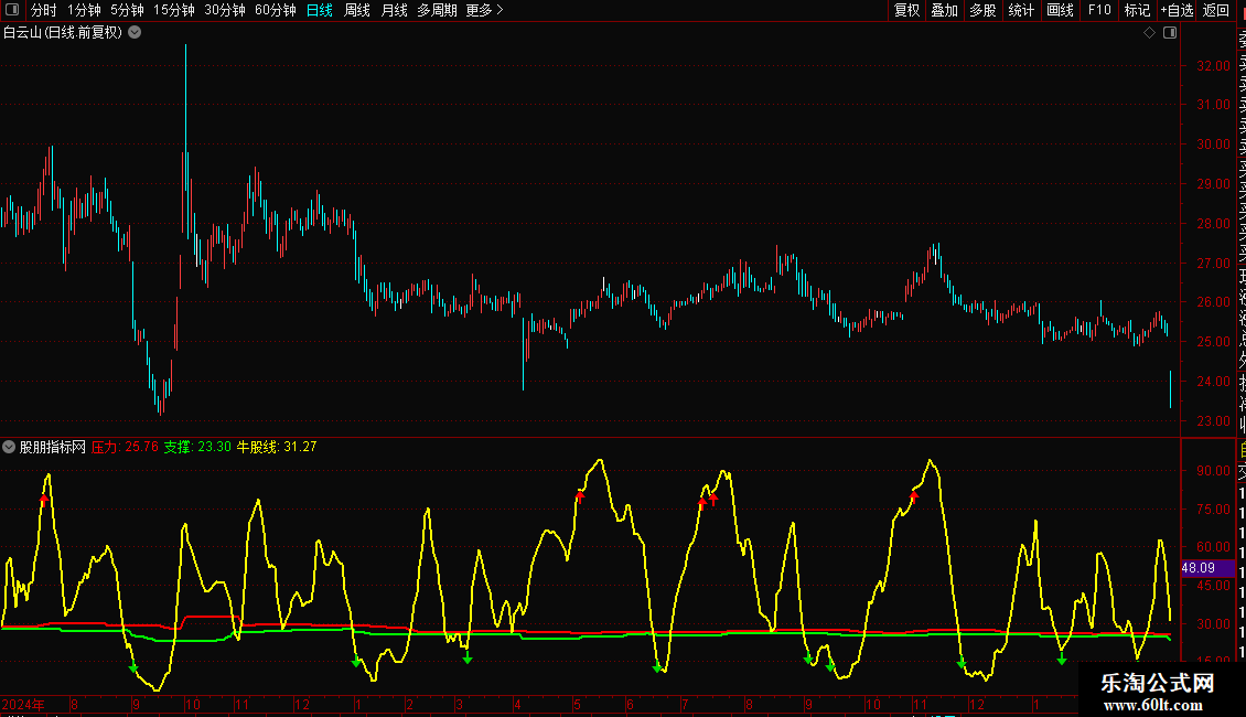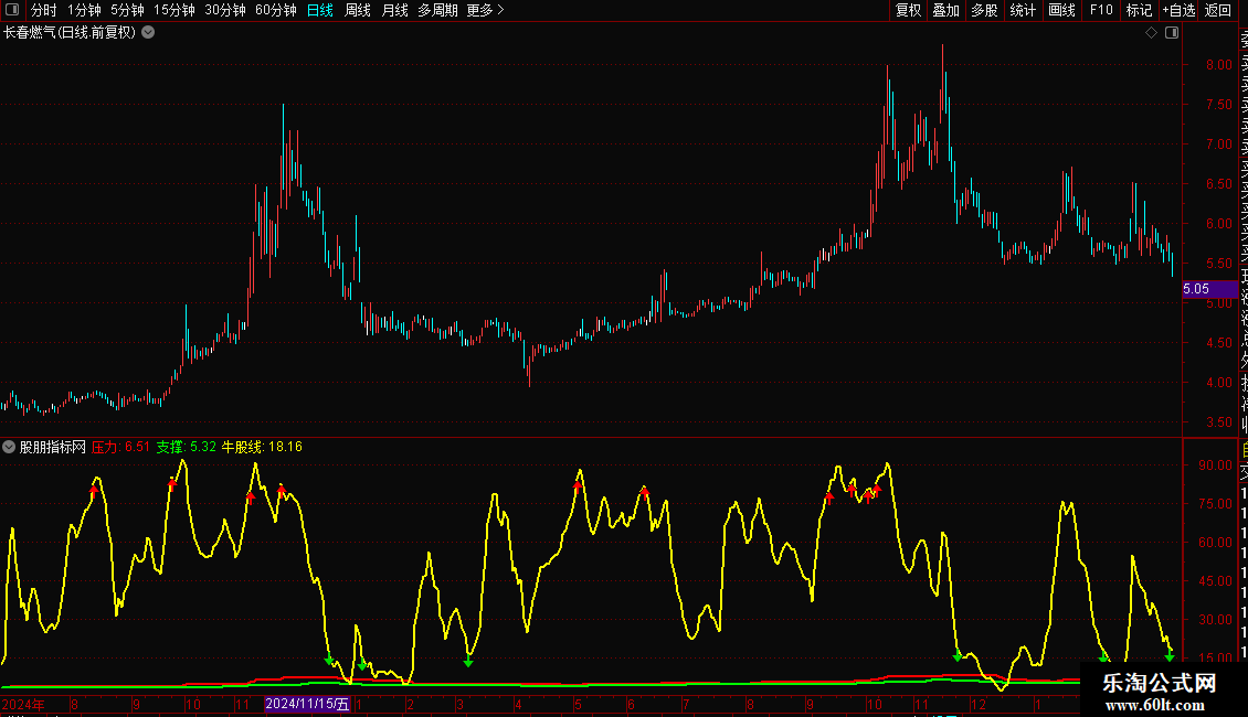 {通达信支撑压力看牛股副图指标加密 无未来}