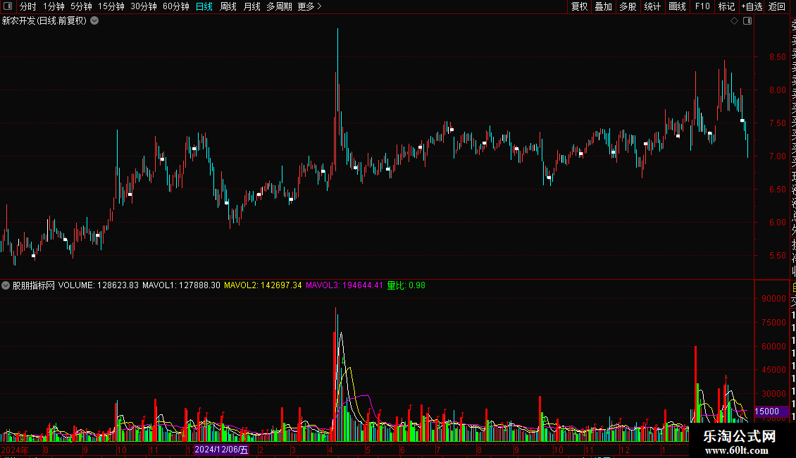 STICKLINE(VOL>REF(VOL,1)*1.5 AND C>REF(C,1),VOL,0,1.5,0),COLORRED;