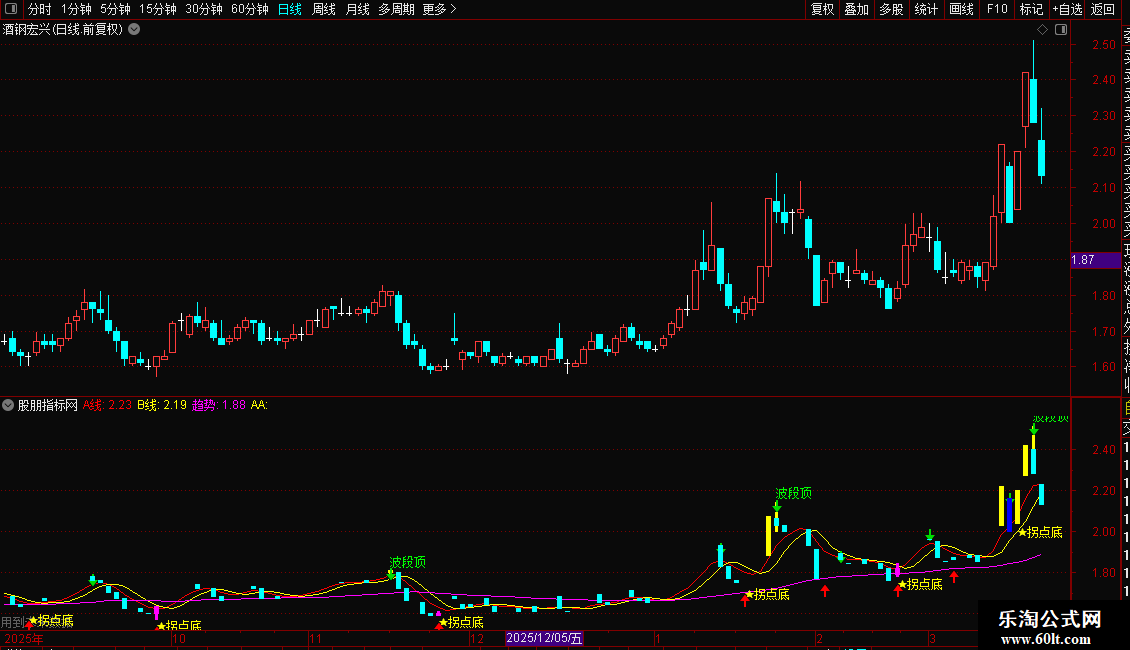 AA:DRAWTEXT(CROSS(ZIG(3,8),REF(ZIG(3,8),1)),LOW*0.978,'★拐点底') ,LINETHICK2,COLORYELLOW;