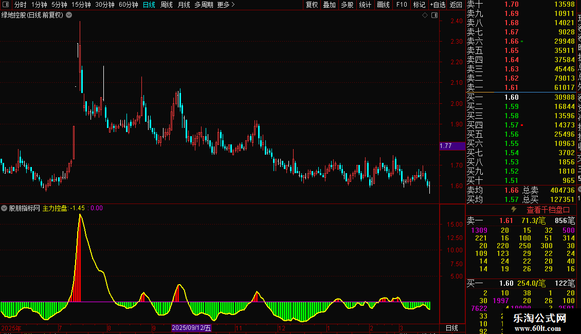 STICKLINE(控盘<0,控盘,0,2,0),COLOR00FF00;