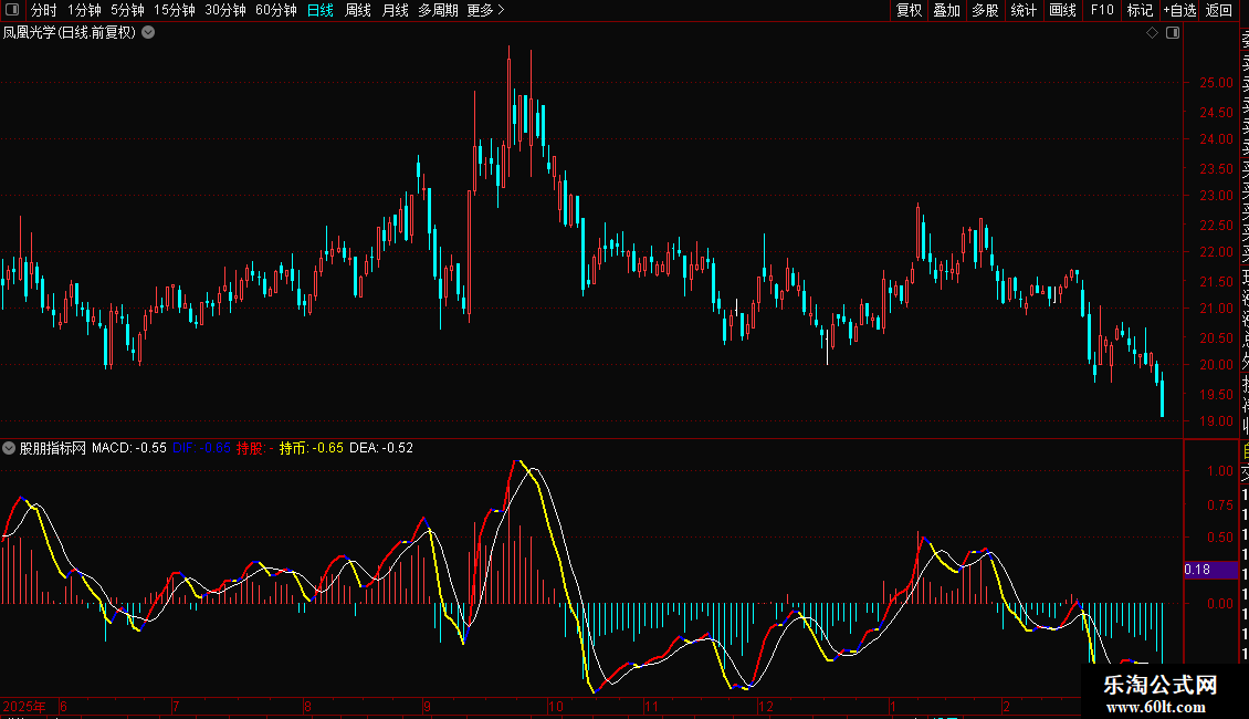 持币:IF(DIF<REF(DIF,1),DIF,DRAWNULL),COLORYELLOW,LINETHICK2;