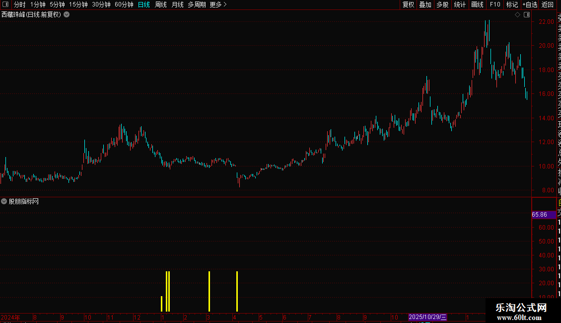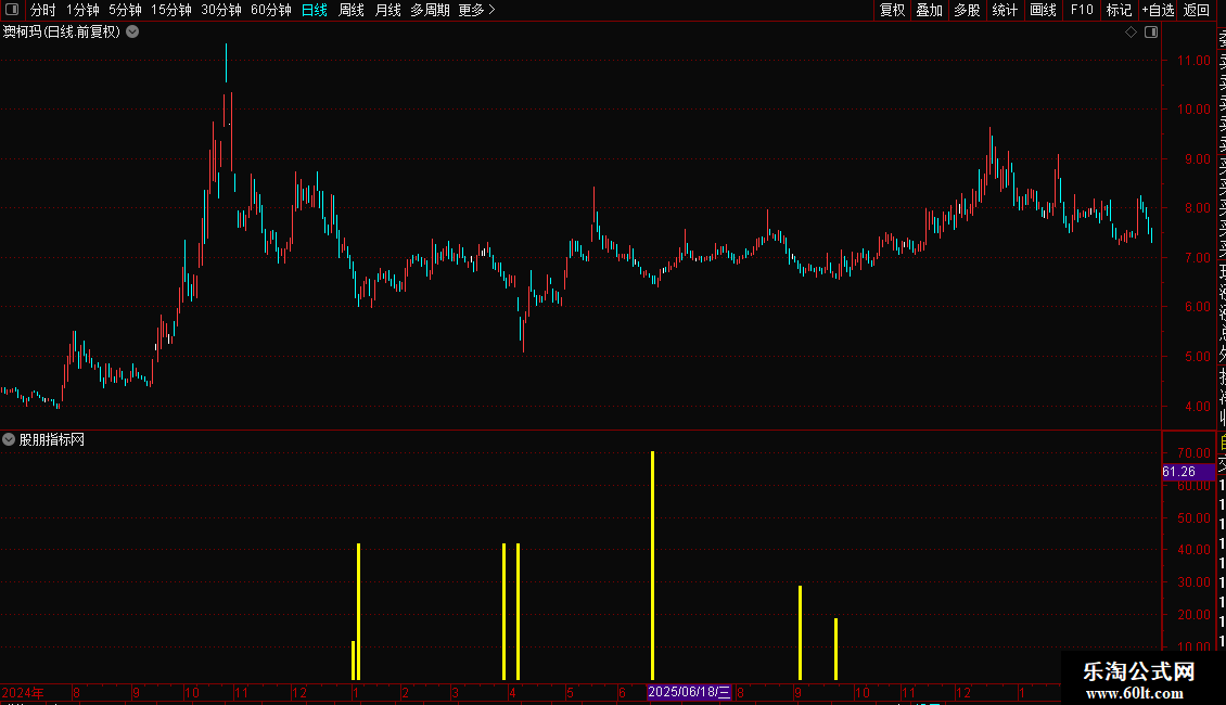 AA3:=( EMA(IF(LOW<=VARE,(VARD+VARF*2)/2,0),3)/618*VAR10) ;