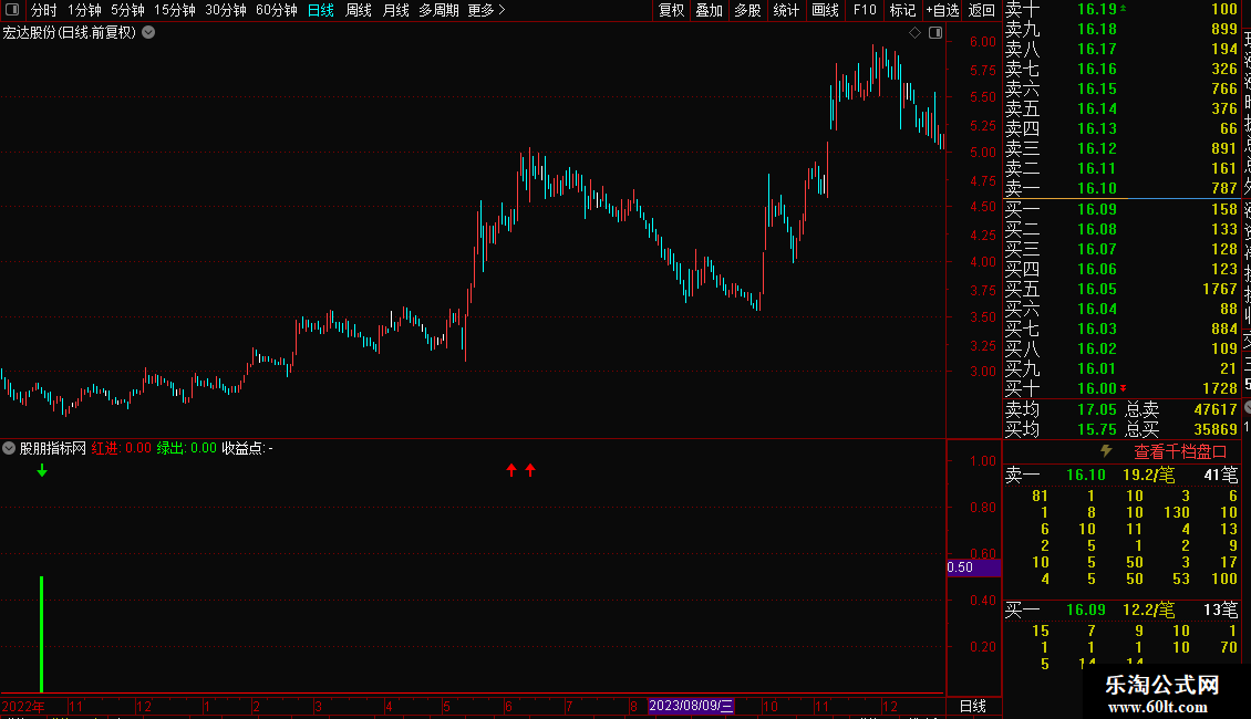 红色箭头介入,绿色箭头卖出,红柱收益提示;
