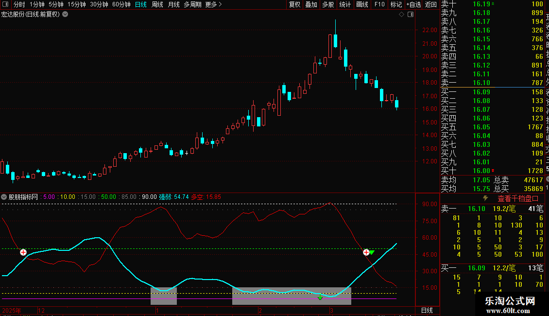 指标中有强弱线和多空线,当强弱线运行至上方出现黄色色块时,代表出现阶段底部注意代吸;反之,当强弱线运行至下方出现灰色色块时,代表出现阶段顶部,注意高抛;