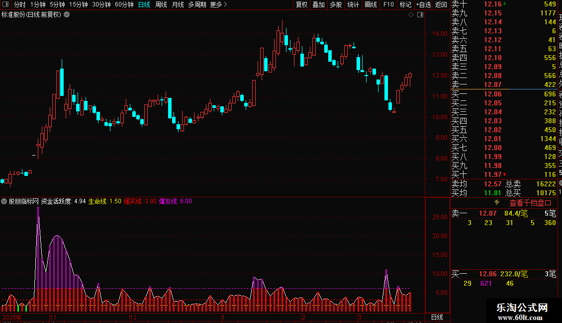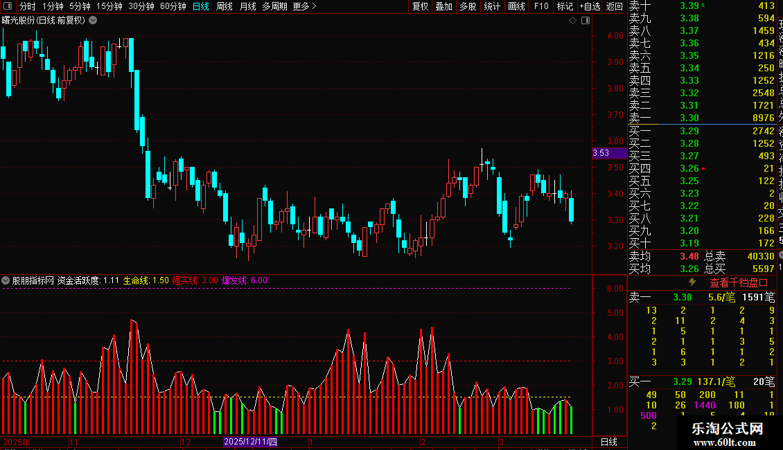 STICKLINE(XA_1<0 AND 资金活跃度<1.5,0,资金活跃度,1,0),COLORGREEN;