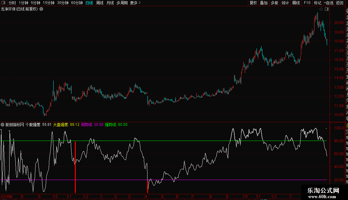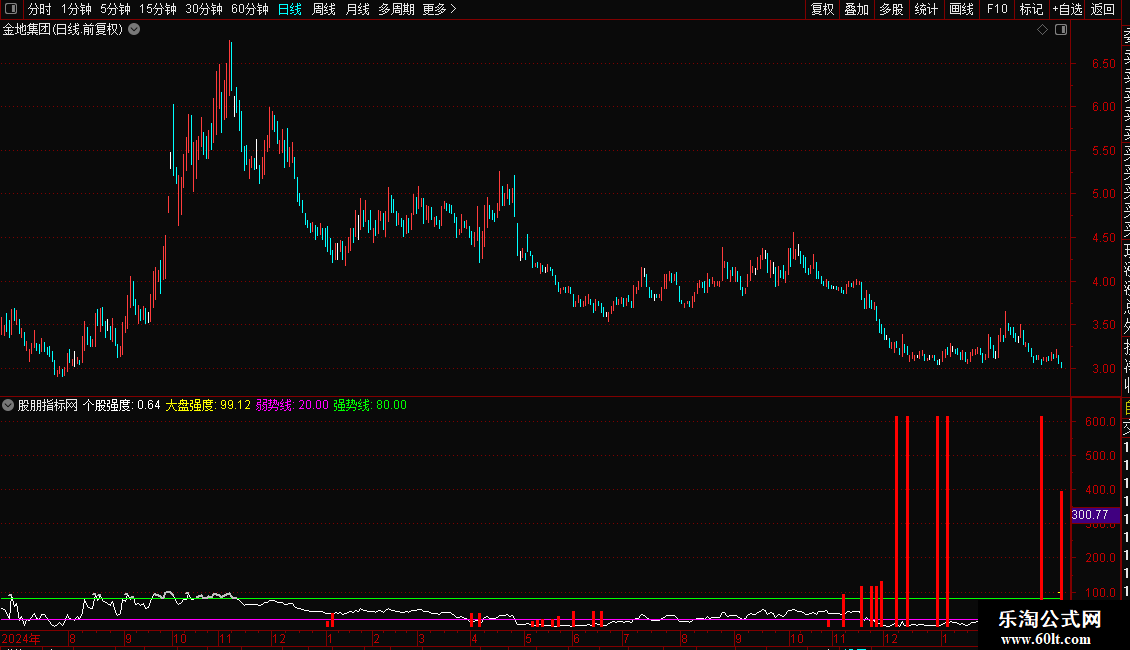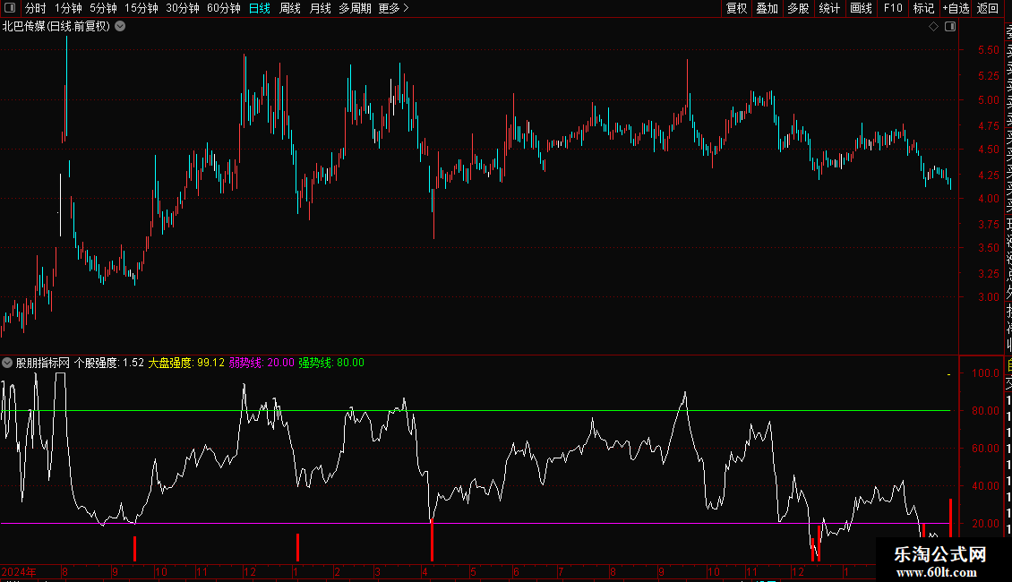 IF(个股强度>=80,个股强度,DRAWNULL),LINETHICK2;