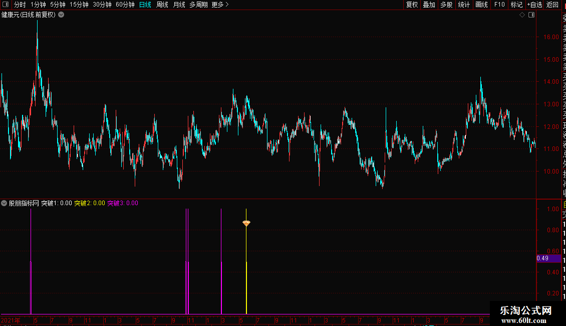 DRAWICON(突破23 AND REF(COUNT(C>O,2)=2,1),0.5,24);